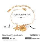 Channel beachy elegance with this gold bracelet, featuring delicate pearls and charming ocean-inspired charms like a seashell, starfish, and pearl drop. A playful yet sophisticated accessory perfect for summer days.